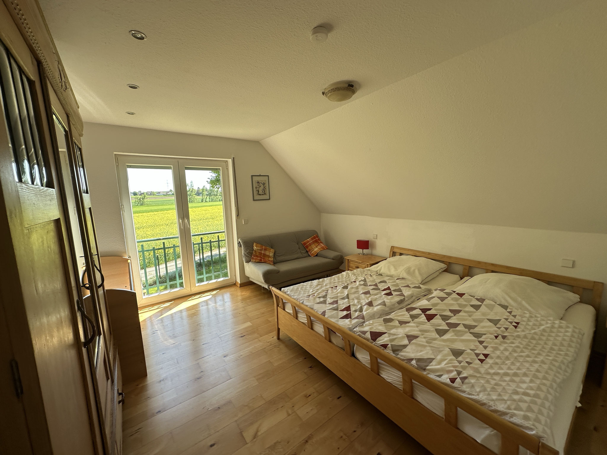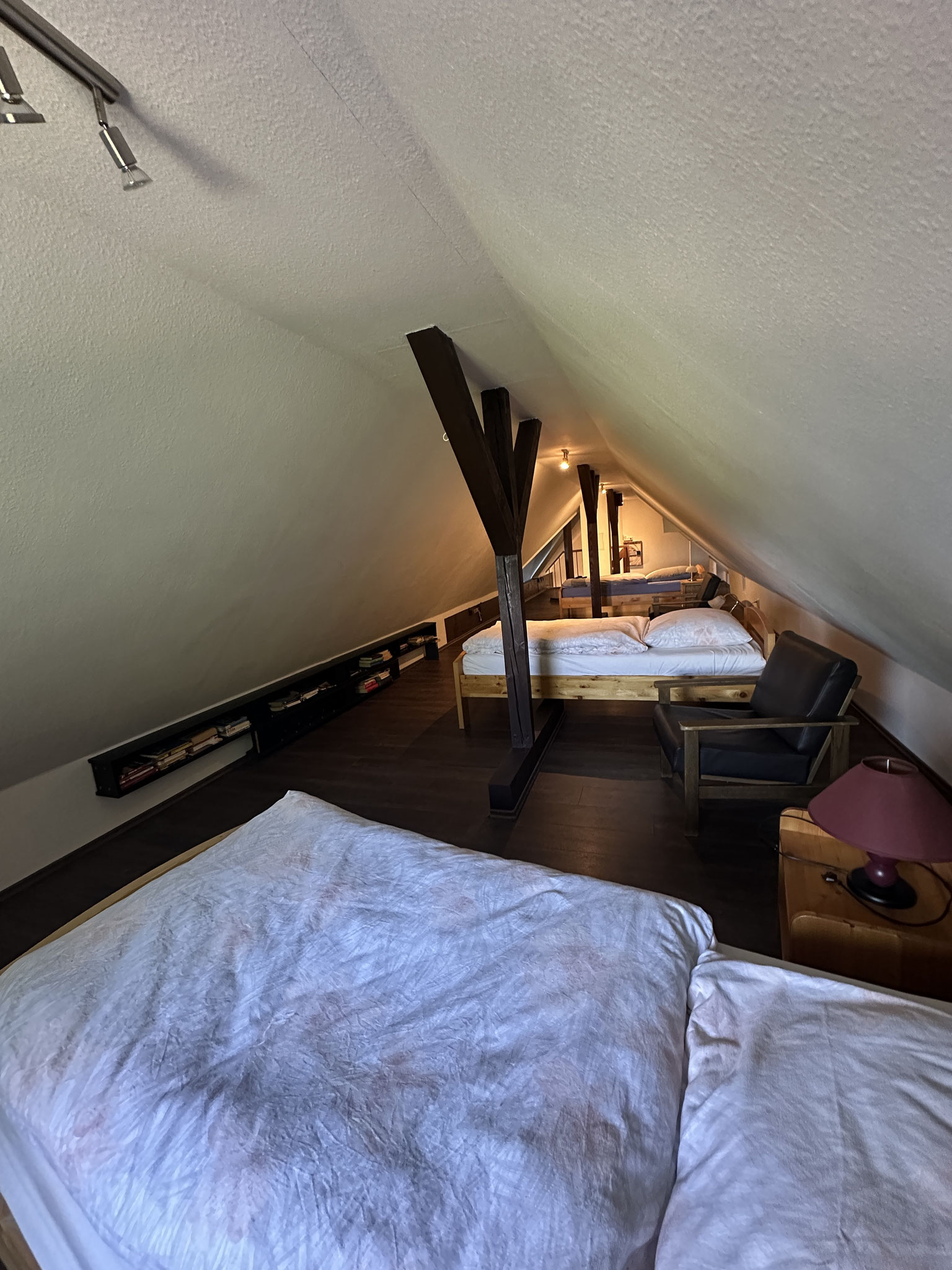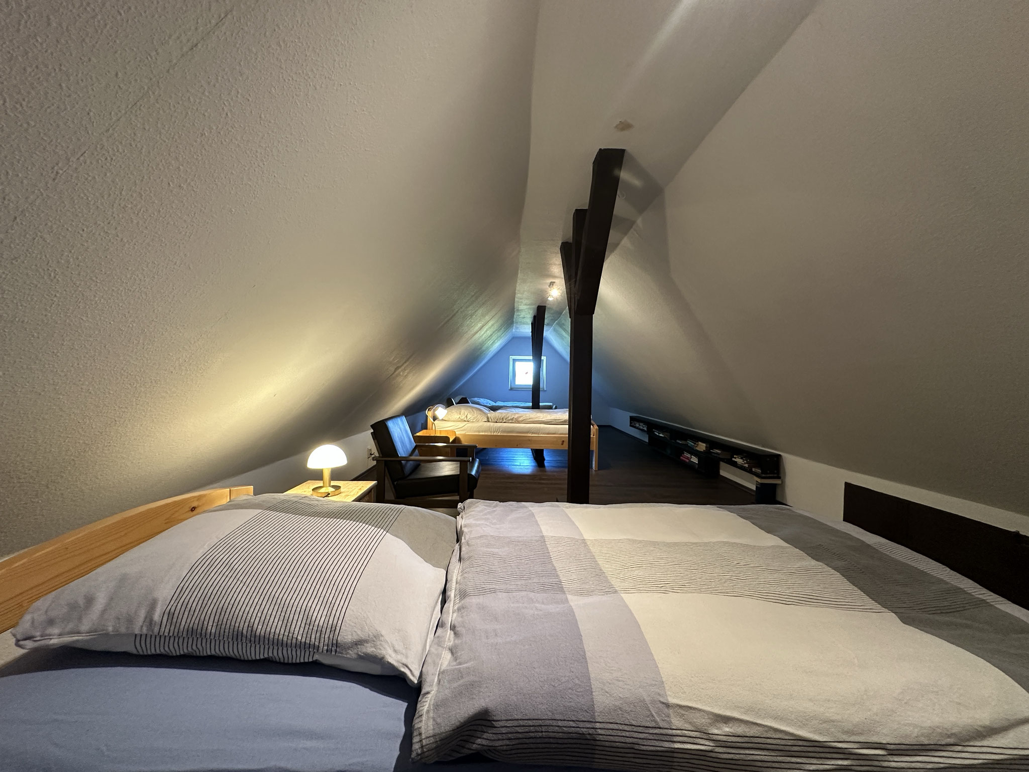 bed). On the attic, there are four single beds, one of the beds is located in an alcove.