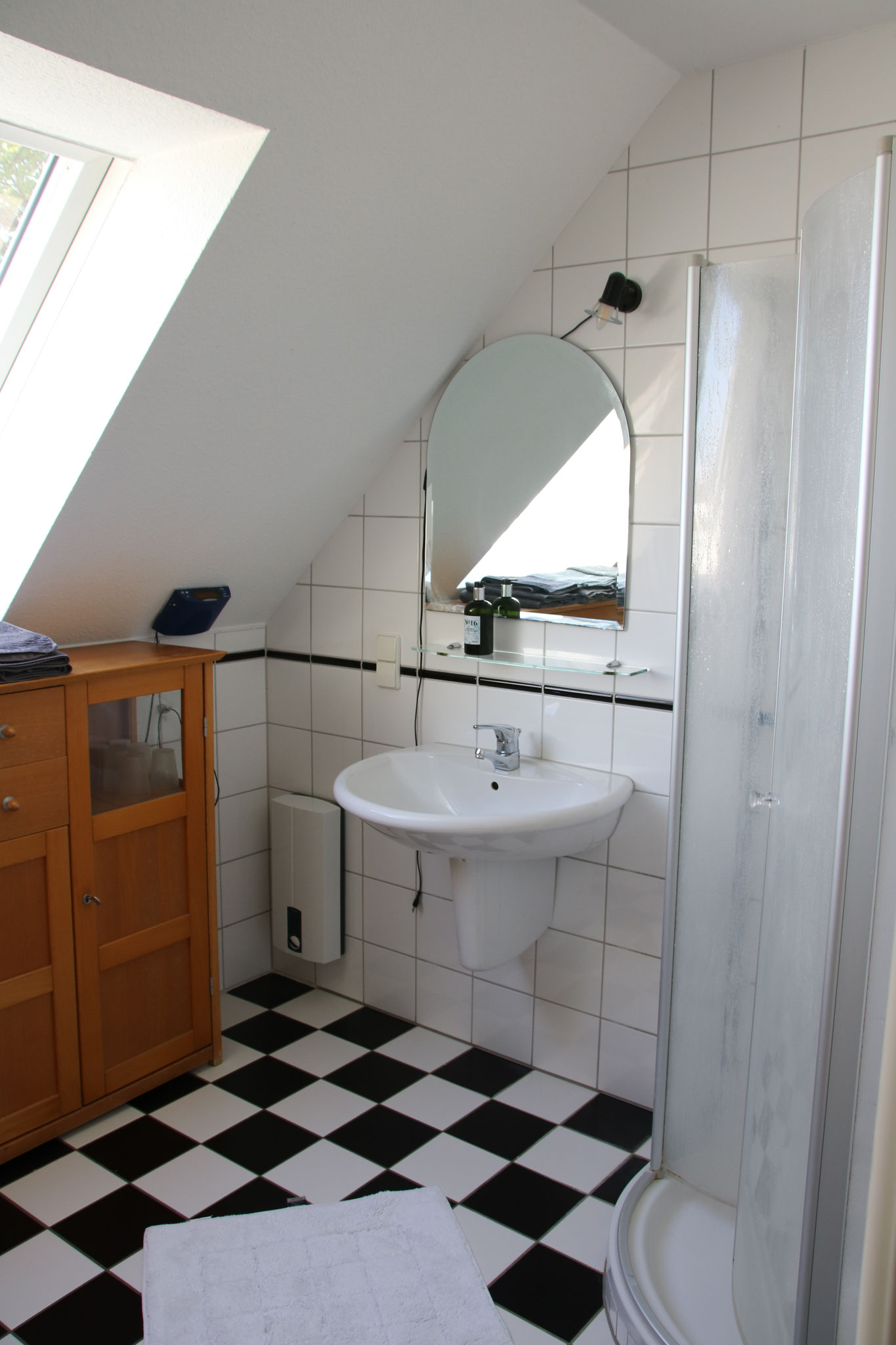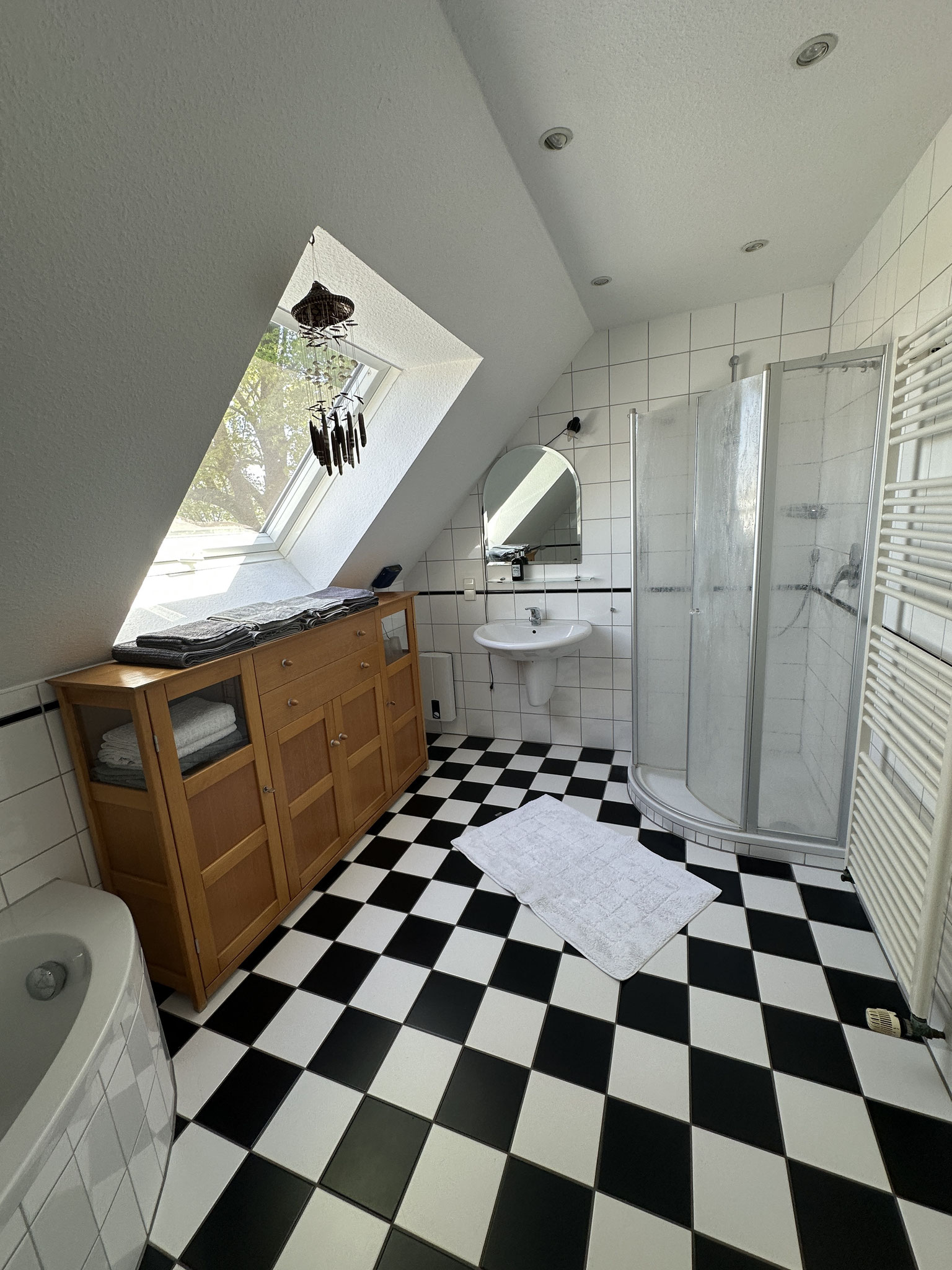 The apartment consists of two floors. The entrance is on the first floor. The second floor, which is the converted attic, can be